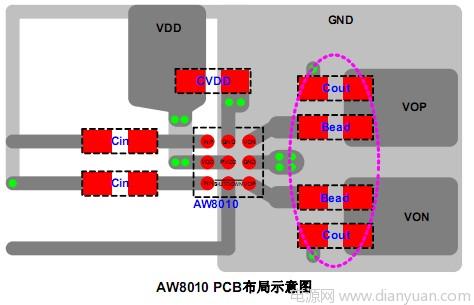同時,功放的其他外圍器件也盡量緊靠芯片放置,還有電源、地線采用星形接法都對提高D類功放的性能有好處。