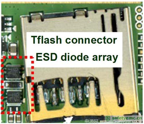 圖2:ESD二極管陣列保護(hù)的Tflash連接器