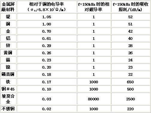 當(dāng)進(jìn)入金屬屏蔽內(nèi)的電磁波在屏蔽金屬內(nèi)傳播時(shí),由于衰減而產(chǎn)生吸收作用。吸收損耗A(dB)為: