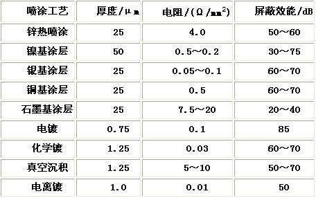 表3 幾種噴涂工藝達(dá)到的屏蔽效能