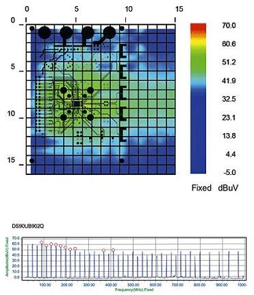 在任何新PCB的開發(fā)過程中,設(shè)計(jì)工程師都必須找出設(shè)計(jì)之外的輻射體或射頻泄漏,并對其進(jìn)行描述和處理以通過一致性測試??赡艿妮椛潴w包括高速、大功率器件以及具有高密度或高復(fù)雜度的器件。掃描系統(tǒng)以疊加在Gerber文件上的形式顯示空間輻射特性,因此測試人員可以準(zhǔn)確地找出所有輻射問題的來源。設(shè)計(jì)工程師可以在采取了相應(yīng)的解決措施之后,對器件進(jìn)行重新測試并立即量化出校正設(shè)計(jì)后的效果。