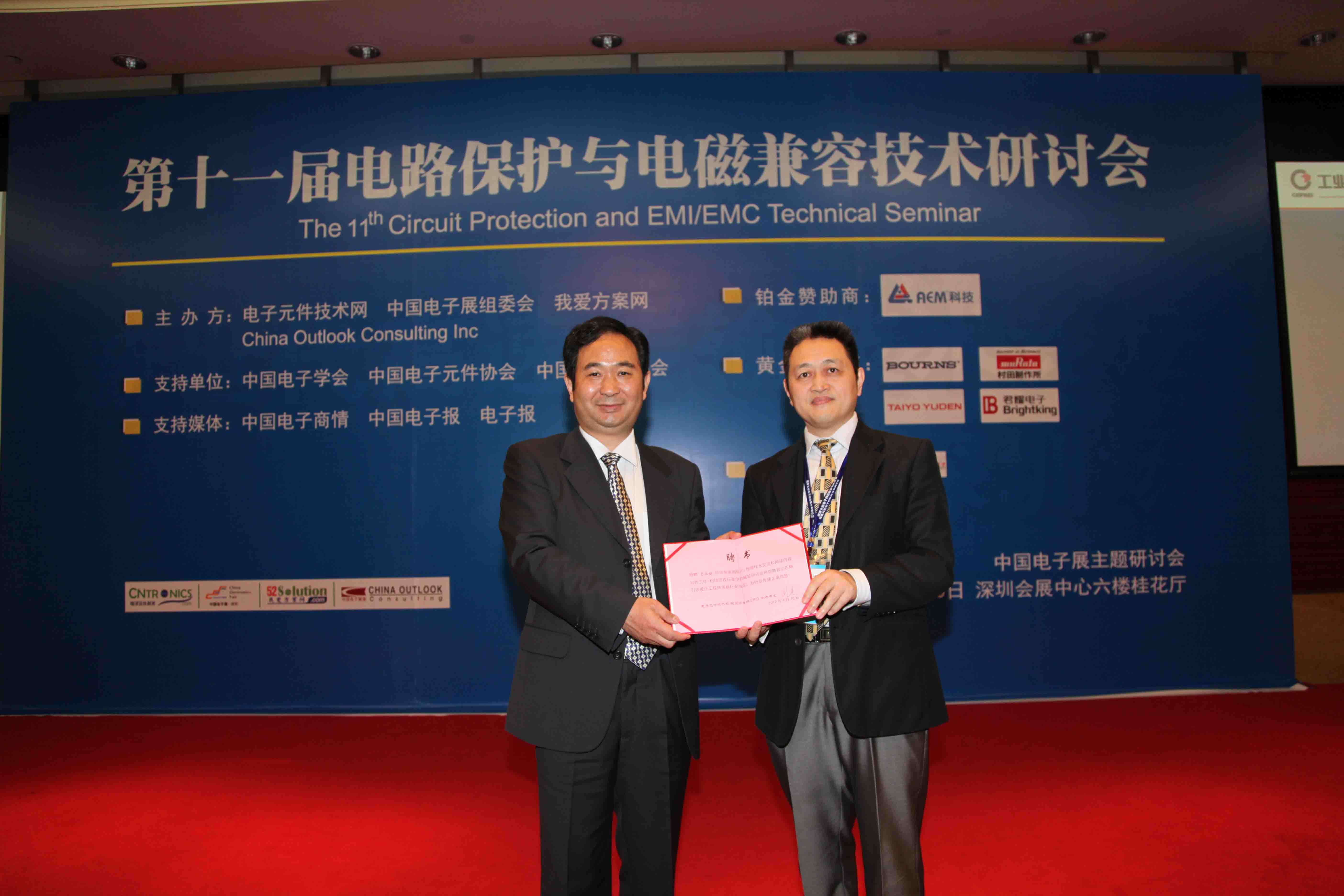 由電子元件技術(shù)網(wǎng)(www.hbshangmei.com)攜手中國電子展、我愛方案網(wǎng)(www.52solution.com)和China outlook consulting主辦的第十一屆新電路保護(hù)與電磁兼容技術(shù)研討會于4月10日在深圳會展中心六樓水仙廳勝利召開!