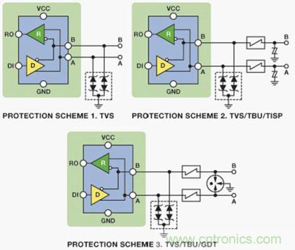 在設(shè)計面向RS-485網(wǎng)絡(luò)的EMC兼容解決方案時,主要難題是讓外部保護元件的動態(tài)性能與RS-485器件輸入/輸出結(jié)構(gòu)的動態(tài)性能相匹配。