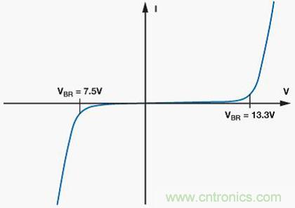 重要的是要確保TVS的擊穿電壓在受保護引腳的正常工作范圍之外。CDSOT23-SM712的獨有特性是具有+13.3 V和–7.5 V的非對稱擊穿電壓,與+12 V至–7 V的收發(fā)器共模范圍相匹配,從而提供最佳保護,同時最大程度減小對ADM3485E RS-485收發(fā)器的過壓應(yīng)力。
