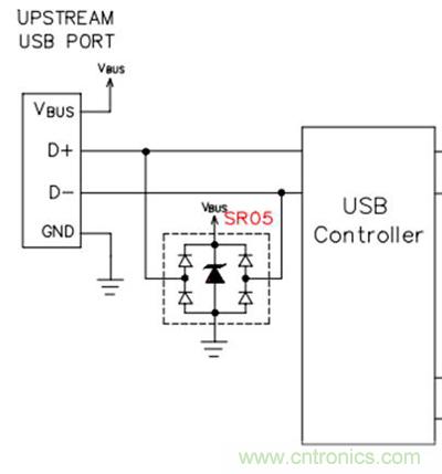 此模塊USB經(jīng)常用來配置數(shù)據(jù),插拔容易被靜電損壞,本方案可以采用分立器件或者集成器件,但要確保選擇的器件結(jié)電容小于3PF。