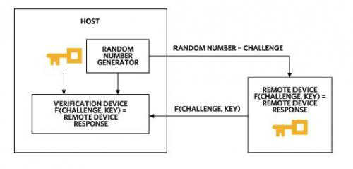 圖1. 基于對稱加密的安全認(rèn)證依賴于主機(jī)和設(shè)備之間的共享密鑰。