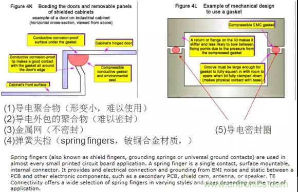要達到40dB的SE,通常需要用導體墊圈、彈簧夾指來進行密封,注意內(nèi)部元件與屏蔽罩的間距、數(shù)據(jù)總線與開孔和縫隙之間的距離。