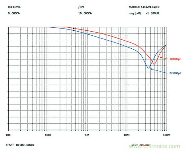 圖9:圖7中的系統,具有通用的22000pF電容濾波。