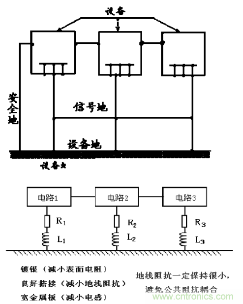 ①降低接地線電阻,為此要選用總截面大和長度短的多股細(xì)導(dǎo)線。