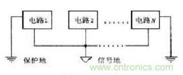 單點接地有兩種類型,一種是串聯(lián)單點接地,另一種是并聯(lián)單點接地。如圖8-3所示。