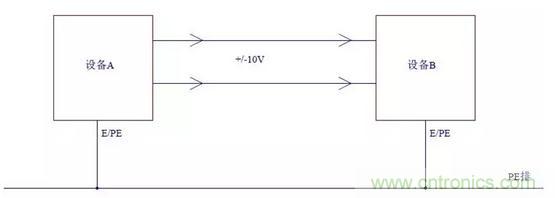 如下圖所示,如果兩個(gè)設(shè)備的零電位沒有很好的連接,即使設(shè)備A輸出的電壓信號是穩(wěn)定的,當(dāng)設(shè)備B的輸入端接收到時(shí)也會變?yōu)椴环€(wěn)定的。