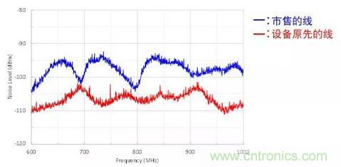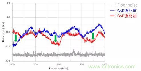 圖3:連接USB電纜前后進(jìn)入天線(xiàn)的噪聲的對(duì)比