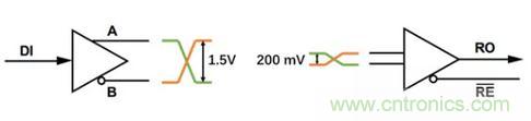 當(dāng)RS-485芯片接受到差分電壓大于200mV時(shí),RO腳輸出低電平,而本身DI可以輸出1.5V的差分電壓。因此有足夠的余量來支持長距離傳輸以及各種環(huán)境噪聲的干擾。