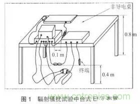 隨著各國電磁兼容標準的推廣和實施,人們越來越重視產品的電磁兼容性問題,各大電子設備制造商也越來越注重產品的電磁兼容性測試,特別是電磁輻射騷擾是否達到相關標準要求。在輻射騷擾測試中,場地對測試結果的影響非常明顯。在不同的測試場地,相同的儀器儀表會得到不同的測量結果,所以各個暗室的測試數據存在著差異。EN55022:2010是歐洲旨在對適用范圍內的信息技術設備無線電騷擾電平給出統(tǒng)一要求的試驗標準,規(guī)定了騷擾限值、測量方法、運行條件和結果的處理要求。EN 55022:2010 輻射騷擾試驗中,臺式設備要求放置在非金屬的桌子上,如圖1所示。標準中只提到桌面的大小通常為1.5m×1.0m,而對試驗桌的材質沒有明確規(guī)定。由于不同材料制作的試驗桌介電常數不同,導致輻射騷擾測試結果不同。本文就試驗桌對輻射騷擾測量的影響進行定量分析。
