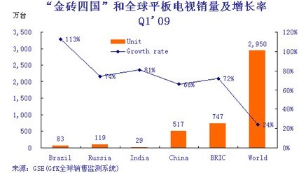 - 金磚四國平板電視銷量同比增長72%,遠(yuǎn)遠(yuǎn)超過全球24%的平均增長速度