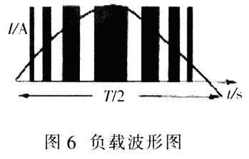 (6)如果將方波電壓按照正弦波的規(guī)律調(diào)制成一系列脈沖,即使脈沖系列的占空比按正弦規(guī)律排列,當(dāng)正弦值為最大時(shí),脈沖的寬度也最大;反之,當(dāng)正弦值為最小時(shí).脈沖的寬度也最小,把脈沖的寬度調(diào)制的越細(xì).即一個(gè)周期內(nèi)脈沖的個(gè)數(shù)越多,調(diào)制后輸出的波形越好,電動(dòng)機(jī)負(fù)載的電流波形越接近于正弦波,圖6為負(fù)載波形。