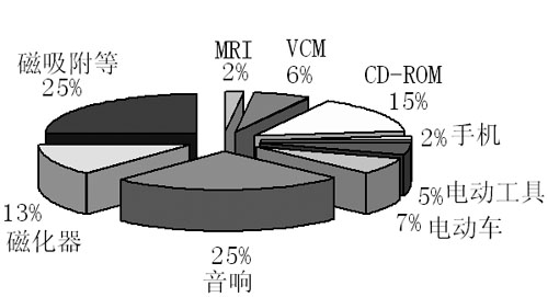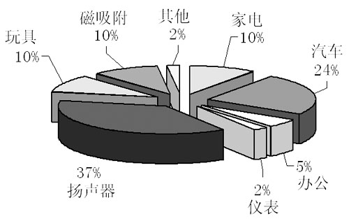 近幾年中國永磁鐵氧體應(yīng)用分類及市場比例