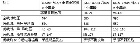 表3 EACO薄膜電容器替代鋁電解電容器測試結(jié)果