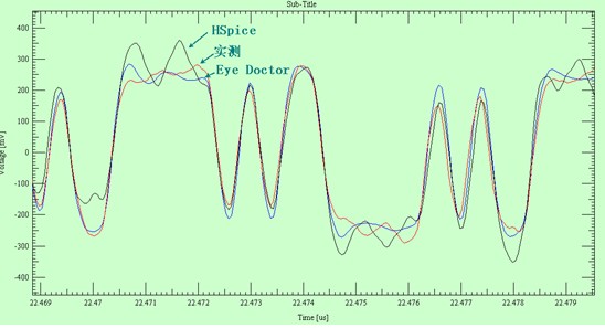 實(shí)測波形,HSPICE、Eye Doctor II仿真結(jié)果3者的波形對(duì)比如下: