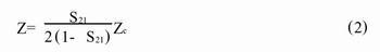 網(wǎng)絡(luò)分析儀測量并結(jié)合一定的校準(zhǔn)方法(TRL)可算出電容的散射參數(shù)S21o由微波網(wǎng)絡(luò)理論可知: