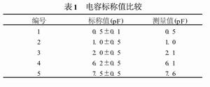 現(xiàn)對5個標(biāo)稱值已知的片式電容在300M~3000MHz的頻率范圍內(nèi)測量,所得數(shù)據(jù)與生產(chǎn)廠家給出的電容標(biāo)稱值進(jìn)行比較,如表1所示。