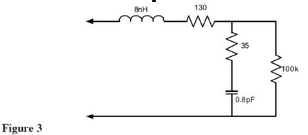 查看Figure 1中的等效電路,可以看到諧振頻率(1/(2*PI*sqrt(LC))給出)點的探頭輸入阻抗是0歐姆——完全消除了被測信號!最近一些制造商開始注意這個問題并設計具有更好輸入特性的探頭。Figure 3展示了這種探頭(Probe A)的等效電路。這是許多給出這個探頭精確依賴于尖端和地夾的等效負載模型之一。這個探頭還有一個諧振點大概是2GHz,該頻點的阻抗被電阻限制到大約165歐姆。