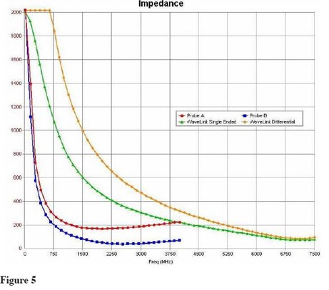 差分探頭具有固有的較低負載,現在的問題是增加到非常高的帶寬差分放大器(這里是7.5GHz)已被解決,這么一個探頭的所有的高頻測量是最好的。WaveLink系列探頭在這些任何已有的高頻探頭中具有最低的負載,提供了測試信號的最低失真。