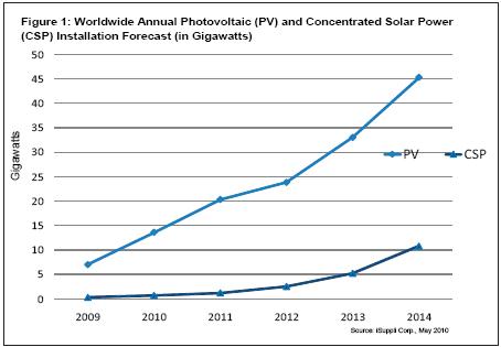 據iSuppli公司,雖然太陽能產業(yè)的多數注意力都集中在光伏(PV)發(fā)電上面,但太陽能市場中增長最快的領域其實是太陽熱能,預計該領域2009-2014年將擴大36倍,而同期PV產業(yè)僅增長五倍。