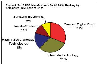 據(jù)iSuppli公司,西部數(shù)據(jù)在2010年第一季度硬盤出貨量最多,季度出貨量首次超過(guò)希捷,結(jié)束了長(zhǎng)期屈居第二的局面。