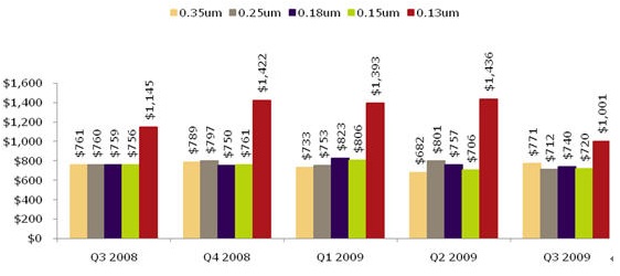 - 0.18微米掩膜, 在2009 Q3與2006 Q3比較時,下降幅度達57%