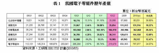- 預(yù)估2010年第二季我國(guó)電子零組件產(chǎn)值將達(dá)新臺(tái)幣2,197億元