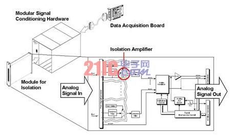 圖8在靈活的信號調(diào)理硬件中使用隔離放大器