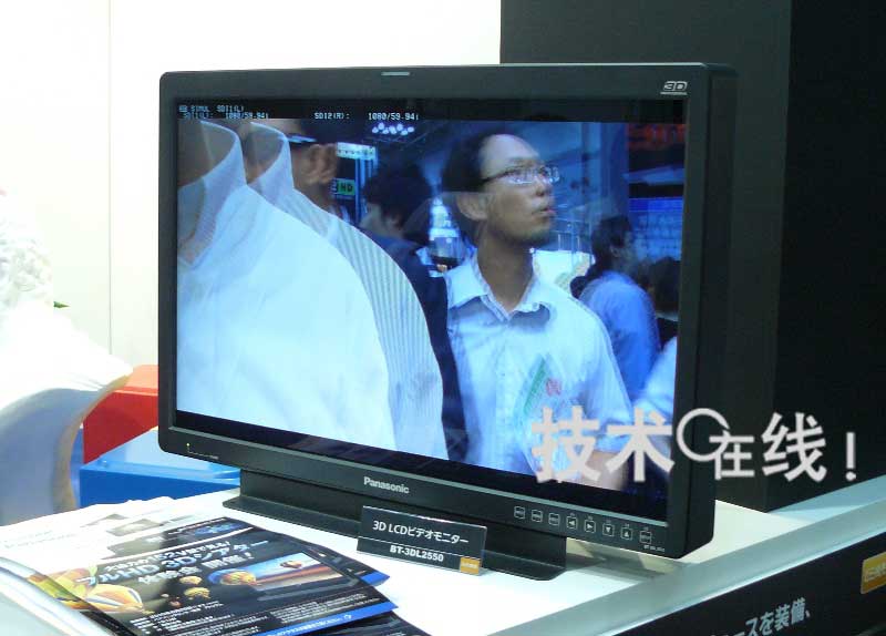 松下的3D液晶顯示器畫面尺寸為25.5英寸,像素為1920×1200。預(yù)定近期上市,價(jià)格為100萬8000日元。支持隔行交互配置左眼及右眼用影像信號(hào)的“Line-By-Line方式”、分兩條信號(hào)線發(fā)送左眼及右眼用影像信號(hào)的“Simul方式”、以及將左眼及右眼用影像信號(hào)只在水平方向壓縮至1/2左右配置的“Side-By-Side方式”。預(yù)定2010年秋季上市采用120Hz驅(qū)動(dòng)PDP及液晶快門配備型眼鏡、支持“Frame Sequencial方式”的3D顯示器。