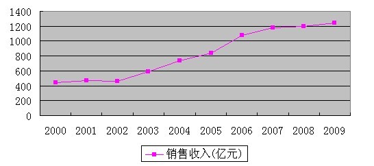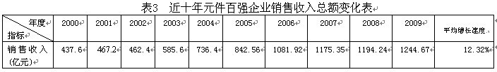 從本屆元件百強(qiáng)的整體銷售收入來看,第23屆元件百強(qiáng)企業(yè)2009年度銷售總額為1244.67億元,同比增長(zhǎng)2.36%,同比增長(zhǎng)率僅比去年(1.61%)略高,元件百強(qiáng)總體銷售收入增幅已連續(xù)三年低于10%。與第22屆元件百強(qiáng)的銷售總額相比,本屆元件百強(qiáng)的銷售總額增加了4.22%,近10年來,中國電子元件百強(qiáng)的銷售收入總額增長(zhǎng)2.84倍,年平均增長(zhǎng)率為12.32%(見表3,圖一)。