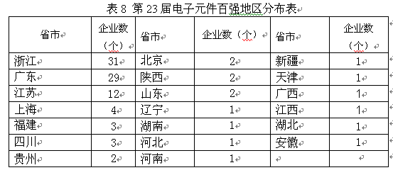 [page]六、電子元件百強(qiáng)的地區(qū)分布