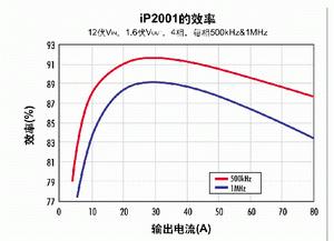 因此,IR公司開發(fā)了iPOWIR系列產(chǎn)品。這些模塊化構(gòu)造模塊包括帶FET的驅(qū)動器IC、回掃(flyback)二極管、以及其它實現(xiàn)一個完整多相DC/DC電源所需的元件。這些器件能被非常緊密地耦合在一起,即便在如下圖所示的很高頻率下也能非常高效地工作。