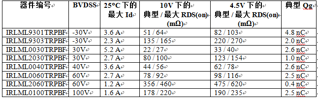 IR 亞太區(qū)銷售副總裁潘大偉表示:“這個全新的SOT-23 MOSFET系列支持從 -30V至100V的寬電壓范圍,并提供不同水平的 RDS(on) 和柵極電荷 (Qg) ,從而為追求緊湊、高效率及低成本解決方案的客戶帶來更佳、更廣泛的設計選擇。”