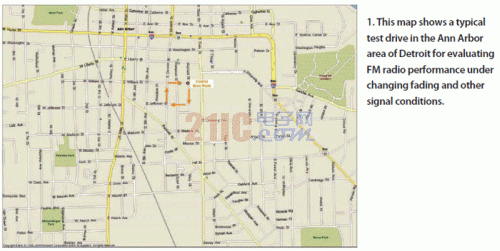 然而,測試行駛方法只能展現(xiàn)主要的可重復性問題。由于天氣的變化和大型車輛的靠近,信號傳播狀態(tài)會不斷發(fā)生改變,因此任兩次測試行駛都不會得到相同的結(jié)果。另外,由于測試行駛是在很大的區(qū)域范圍內(nèi)完成的,要準確評估不同地區(qū)的AM/FM收音機設計性能,測試可重復性十分關鍵。幸運的是,由于射頻信號記錄和存儲技術的不斷發(fā)展,記錄真實的FM廣播信號完全可以替代傳統(tǒng)測試行駛方法實現(xiàn)商用AM/FM收音機設計的評估。