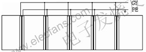 在注塑后的蓄電池池殼的隔板兩邊緊貼隔板分別放置兩塊厚銅板,其中一塊銅板接直流高壓,另一塊銅板接地線,在兩塊銅板之間加1.5萬(wàn)伏~3萬(wàn)伏直流高壓,通過檢測(cè)泄漏電流的大小來(lái)判斷池殼好壞,當(dāng)池殼隔板有氣孔或有毛毗等缺陷時(shí)此處隔板變薄,承受高壓的能力差,空氣電離嚴(yán)重,泄漏電流比正常池殼明顯增大,當(dāng)檢測(cè)到的泄漏電流大于設(shè)定泄漏電流時(shí)我們用聲光報(bào)警來(lái)表明此電池不合格。 (設(shè)定的泄漏電流值根據(jù)實(shí)際情況定)。以一只12V 6單格的小密鉛酸蓄電池為例,其池殼的高壓接線如圖1。