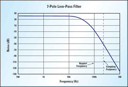 我們最好采用125倍的增益,以便多留一點余量。以40kHz這個最高信號頻率為例,取樣率便成為一個令人擔(dān)憂的問題。為免高于尼奎斯特頻率的混疊信號頻率,我們必須將取樣頻率的一半加以濾波,然后將振幅抑制至模擬/數(shù)字轉(zhuǎn)換器的1LSB以下。在這個例子中,我們所采用的是12位的模擬/數(shù)字轉(zhuǎn)換器,其參考電壓為4.096V,將得到1mV解析度,計算方法如下:
