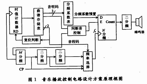 音樂(lè)播放控制電路設(shè)計(jì)方案原理框圖如圖1所示。