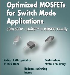 開關電源的設計人員需要能夠耐受反向電流尖刺并降低開關損耗的高電壓MOSFET器件,飛兆半導體公司(Fairchild Semiconductor)憑借精深的MOSFET技術知識,開發(fā)出經優(yōu)化的功率MOSFET產品UniFET™ II MOSFET,新產品具有更佳的體二極管和更低的開關損耗,并可在二極管恢復dv/dt模式下耐受雙倍電流應力。
