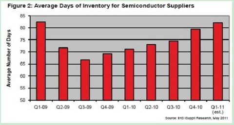 近日消息,據(jù)IHS iSuppli公司的研究,第一季度的過(guò)多半導(dǎo)體庫(kù)存,幫助半導(dǎo)體產(chǎn)業(yè)避免了組件嚴(yán)重短缺。最初人們擔(dān)憂,日本地震與海嘯會(huì)帶來(lái)嚴(yán)重的組件短缺問(wèn)題。