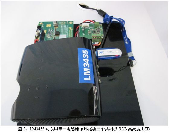 針對便攜式投影儀的單電感RGB循環(huán)模式2A LED驅(qū)動器LM3435也是美國國家半導體在本屆廣州照明展上重點推出的產(chǎn)品。LM3435可以用單一電感器循環(huán)驅(qū)動三個共陽極RGB高亮度LED,這是LM3435最大的特點。