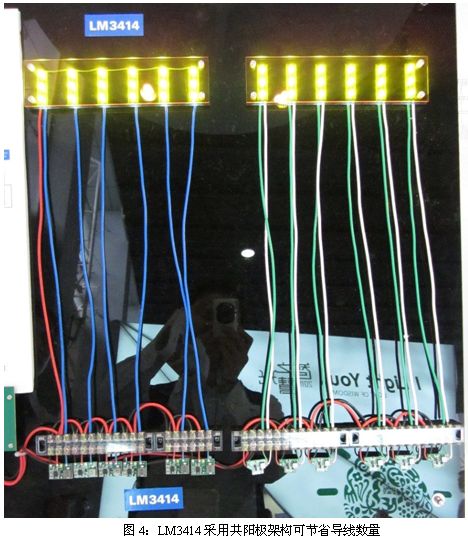 LM3414一款內(nèi)置電流檢測電路的DC/DC LED 驅(qū)動器,無需外置檢測電阻,有助于節(jié)省系統(tǒng)成本及縮小方案體積。LM3414采用共陽極配置的浮動降壓拓撲結(jié)構(gòu),因此可以節(jié)省導線成本。用傳統(tǒng)方法,LED驅(qū)動IC與LED之間需要2N條導線,LM3414則只需要N+1條導線,節(jié)省近一半的導線,如果是遠距離連接,節(jié)省可觀的導線成本。