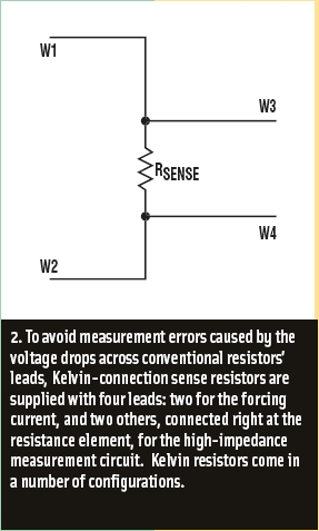 圖2:開爾文連接是一種帶有兩條激勵(lì)引線和兩條傳感引線的4線連接。