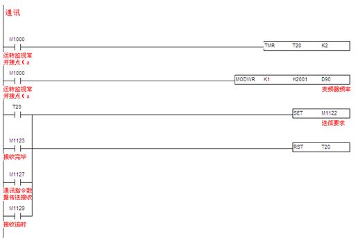 3.2.3通訊程序:臺(tái)達(dá)SS PLC提供兩個(gè)通訊口。本文中,SS PLC的COM1口已與觸摸屏通訊,所以利用SS PLC的COM2 通訊口(此通訊口接口是RS485),支持MODBUS通訊便利指令,編通訊程序像編順序邏輯程序一樣簡(jiǎn)單,讓對(duì)通訊底層不是很了解的人也能快速上手。快速編寫MODBUS通訊程序,控制如臺(tái)達(dá)全系列產(chǎn)品,如變頻器、溫控器、伺服等產(chǎn)品。見圖10。