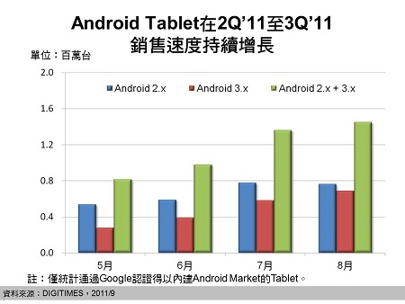 - 8月Android Tablet銷售量近150萬臺