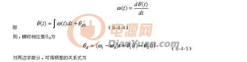 式中的ωi為輸入信號的瞬時(shí)振蕩角頻率,θi(t)和θO(t)分別為輸入信號和輸出信號的瞬時(shí)位相,根據(jù)相量的關(guān)系可得瞬時(shí)頻率和瞬時(shí)位相的關(guān)系為: