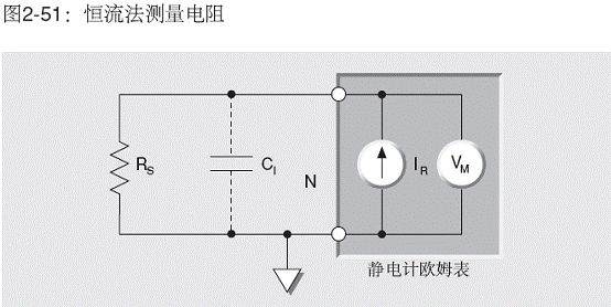 輸入電容也會(huì)以同樣的方式影響電阻測(cè)量(圖2-51)。這時(shí),CIN也必須由電流(IR)充電,因此也適用同樣的公式。